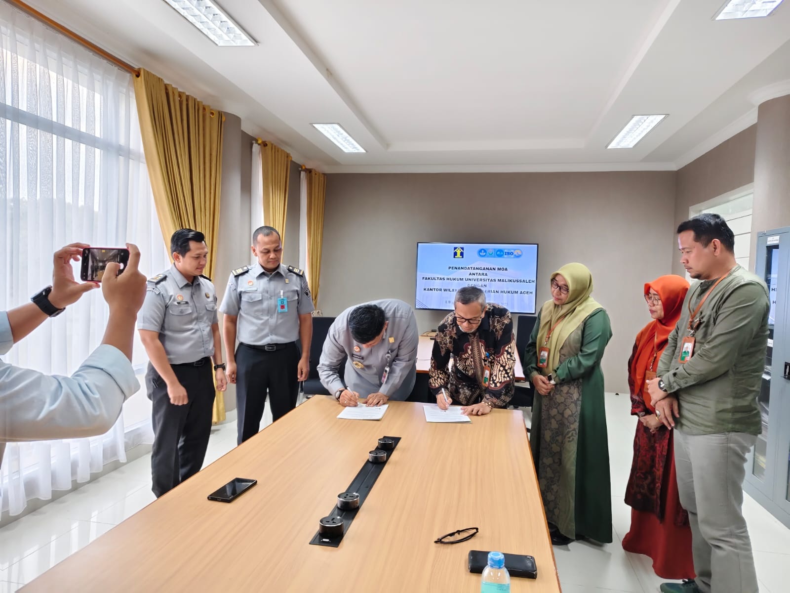 Bukit Indah - Fakultas Hukum Universitas Malikussaleh melakukan penandatanganan Nota Kesepahaman (MoU) dengan Kantor Wilayah Kementerian Hukum (Kanwil Kemenkum) Aceh, Selasa (30/9/2025).